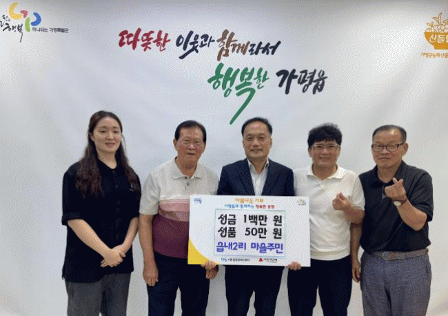 [NWS¹æ¼Û=Çѽ¸ñ ±âÀÚ]°¡Æò±º °¡ÆòÀ¾ À¾³»2¸® ¸¶À»È¸´Â 17ÀÏ ÇàÁ¤º¹Áö¼¾Å͸¦ ¹æ¹®ÇØ ÀÌ¿ôµ½±â ¼º±Ý 100¸¸ ¿ø°ú 50¸¸ ¿ø »ó´çÀÇ ¼ºÇ°À» ±âŹÇß´Ù. ¼­¹«¿µ ÀÌÀåÀº ¡°À¾³»2¸® ¸¶À»È¸¿Í ³ëÀÎȸ, ºÎ³àȸ, û³âȸ ¹× Ä«Æä º¸³³Á¤¿¡¼­ Áö¿ª ³» ¡¦