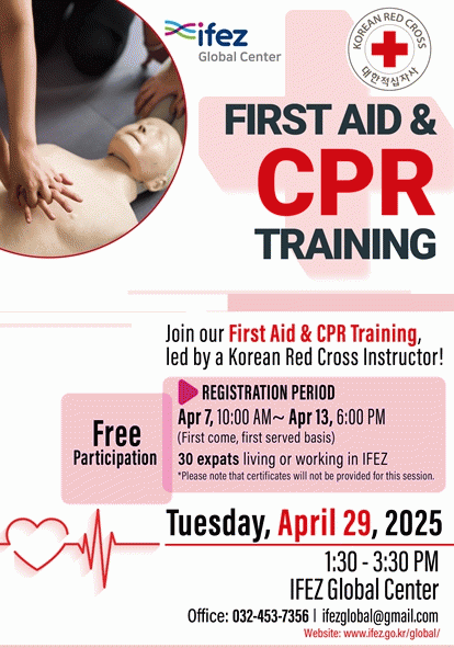 [NWS¹æ¼Û=Çѽ¸ñ ±âÀÚ]ÀÎõ°æÁ¦ÀÚÀ¯±¸¿ªÃ»Àº ¿À´Â 29ÀÏ ¿ÀÈÄ 1½Ã 30ºÐºÎÅÍ 2½Ã°£ µ¿¾È IFEZ ³» ¿Ü±¹ÀÎÀ» ´ë»óÀ¸·Î ½ÉÆó¼Ò»ý¼ú(CPR)°ú ÀÀ±Þóġ¹ý ±³À°À» ½Ç½ÃÇÑ´Ù°í ¹àÇû´Ù. À̹ø ±³À°Àº ¿Ü±¹ÀεéÀÇ ¾ÈÀüÇÑ »ýȰ ȯ°æ Á¶¼ºÀ» À§ÇØ ¿ÃÇØ ¡¦