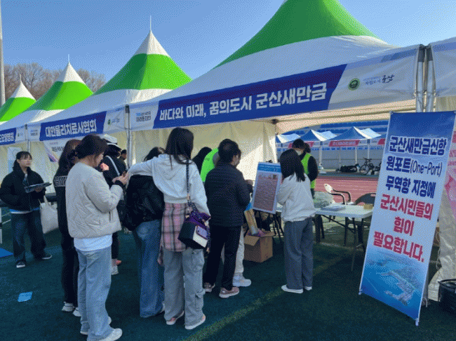 [NWS¹æ¼Û=Çѽ¸ñ ±âÀÚ]±º»ê½Ã°¡ 6ÀÏ ±º»ê»õ¸¸±Ý¸¶¶óÅæ´ëȸ¿¡¼­ ¡®¹Ù´Ù¿Í ¹Ì·¡, ²ÞÀÇ µµ½Ã ±º»ê»õ¸¸±Ý¡¯ È«º¸ºÎ½º¸¦ ¿î¿µÇØ ½Ã¹Îµé¿¡°Ô Å« È£ÀÀÀ» ¾ò¾ú´Ù. À̹ø È«º¸´Â ±º»ê»õ¸¸±ÝÀ» ½Ã¹Î°ú Âü°¡Àڵ鿡°Ô ¾Ë¸®°í, ÃÖ±Ù ÀïÁ¡ÀÌ µÈ ÁÖ¿ä Çö¡¦