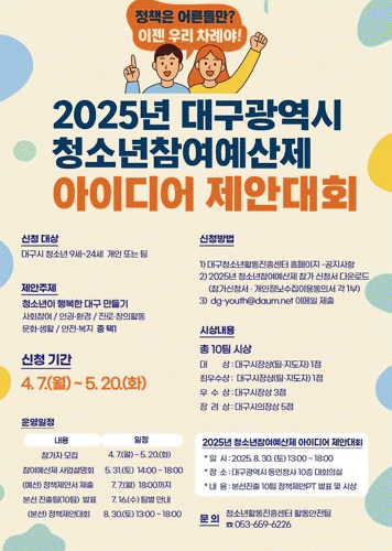 [»çȸ] ´ë±¸±¤¿ª½Ã,¡®Ã»¼Ò³âÂü¿©¿¹»ê Á¦¾È´ëȸ¡¯Âü°¡ÀÚ ¸ðÁý |2025. 04.06