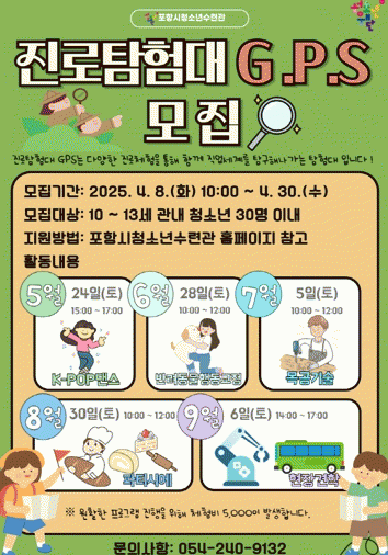 [»çȸ] Æ÷Ç×½Ãû¼Ò³â¼ö·Ã°ü, ¡®Áø·ÎŽÇè´ë G.P.S.¡¯ Âü°¡ÀÚ ¸ðÁý |2025. 04.06