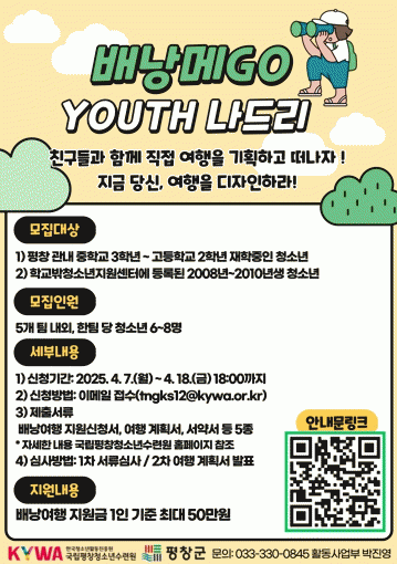[»çȸ] Æòⱺ-±¹¸³Æòâû¼Ò³â¼ö·Ã¿ø, û¼Ò³â ±¹³» ¹è³¶¿©Çà Âü°¡ û¼Ò³â ¸ðÁý |2025. 04.06