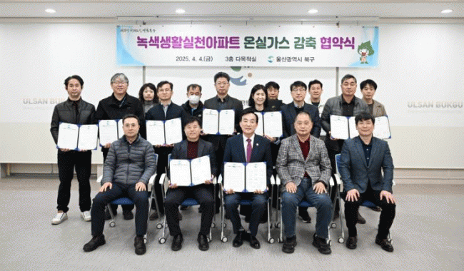 [NWS¹æ¼Û=Çѽ¸ñ ±âÀÚ]¿ï»ê ºÏ±¸´Â 4ÀÏ ±¸Ã» ´Ù¸ñÀû½Ç¿¡¼­ Áö¿ª 13°³ °øµ¿ÁÖÅðú ³ì»ö»ýȰ½Çõ ¾ÆÆÄÆ® ¿Â½Ç°¡½º °¨Ãà Çù¾àÀ» ü°áÇß´Ù. ºÏ±¸´Â ºñ»ê¾÷ ºÎ¹®ÀÎ °¡Á¤ÀÇ ¿Â½Ç°¡½º °¨Ãà ³ë·Â ¹× Àúź¼Ò »ýȰ¹®È­ Âü¿© È®´ë¸¦ À§ÇØ 150¼¼´ë ÀÌ¡¦