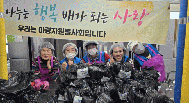 [NWS¹æ¼Û=Çѽ¸ñ ±âÀÚ]¹Ð¾ç½Ã ³»Àϵ¿Àº 4ÀÏ ¾Æ¶ûÀÚ¿øºÀ»çȸ¿¡¼­ Áö¿ª ³» °ÅÁÖÇÏ´Â ¾î·Á¿î ÀÌ¿ôµéÀ» À§ÇØ ¹Ø¹ÝÂù ³ª´® ºÀ»ç¸¦ ÆîÃÆ´Ù°í ¹àÇû´Ù. À̳¯ ¾Æ¶ûÀÚ¿øºÀ»çȸ ȸ¿øµéÀº ¼Ò°í±ê±¹°ú ¾î¹¬ººÀ½À» Á¤¼º²¯ ¸¶·ÃÇØ Àú¼Òµæ Ȧ·Î ¾î¸£½Å¡¦