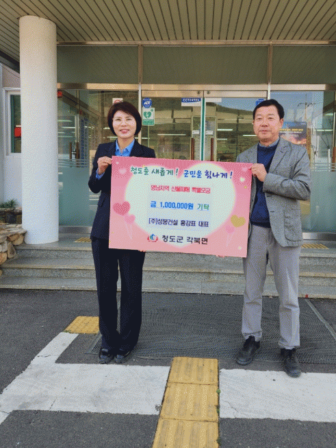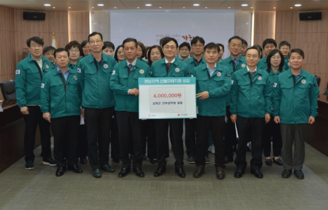 [NWS¹æ¼Û=Çѽ¸ñ ±âÀÚ]ûµµ±º °¢ºÏ¸éÀº Áö³­ 3ÀÏ [ÁÖ]¼ººÀ°Ç¼³ È«°­Ç¥ ´ëÇ¥°¡ ¿µ³²Áö¿ª »êºÒÇÇÇØ º¹±¸¸¦ À§ÇÑ Æ¯º°¸ð±Ý¿¡ 100¸¸¿øÀ» ±âŹÇß´Ù°í ¹àÇû´Ù. ÃÖ±Ù ¹ß»ýÇÑ ¿µ³²Áö¿ª ´ë±Ô¸ð »êºÒ·Î ÀÎÇØ ¸¹Àº À̵éÀÌ ÇÇÇØ¸¦ ÀÔ°í °íÅëÀ» °Þ°í¡¦