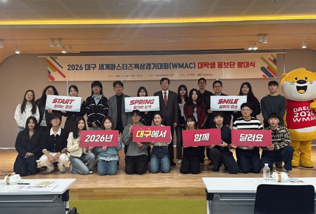 [NWS¹æ¼Û=Çѽ¸ñ ±âÀÚ] 2026 ´ë±¸¼¼°è¸¶½ºÅÍÁî À°»ó°æ±â´ëȸ Á¶Á÷À§¿øÈ¸¿Í ´ë±¸±¹Á¦°³¹ßÇù·Â¼¾ÅÍ´Â 4¿ù 4ÀÏ ¿ÀÈÄ 2½Ã Áö¿ª´ëÇÐÇù·Â¼¾ÅÍ(Áß±¸ ¼­¼º·Î20±æ 25)¿¡¼­ ´ëÇлý È«º¸´ÜÀÇ °ø½Ä Ãâ¹üÀ» ¾Ë¸®°í º»°ÝÀûÀΠȰµ¿¿¡ µ¹ÀÔÇß´Ù. 2026 ´ë¡¦