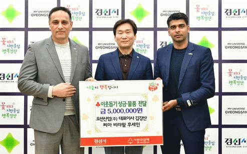 [NWS¹æ¼Û=Çѽ¸ñ ±âÀÚ]°æ»ê½Ã ÇϾçÀ¾¿¡ À§Ä¡ÇÑ ¿À¼Ç»ê¾÷¢ßÀº 4ÀÏ ±è°­»ê ´ëÇ¥ÀÌ»ç¿Í Â ºñ¶ó¿Ð Èļ¼ÀÎÀÌ °æ»ê½ÃûÀ» ¹æ¹®ÇØ Áö¿ª ³» ¾î·Á¿î ÀÌ¿ôÀ» µ½±â À§ÇØ 500¸¸ ¿ø »ó´çÀÇ ¼º±Ý°ú »ýÇÊǰÀ» ±âŹÇß´Ù. ±è°­»ê ´ëÇ¥ÀÌ»ç´Â ¡°°æ±â ħ¡¦