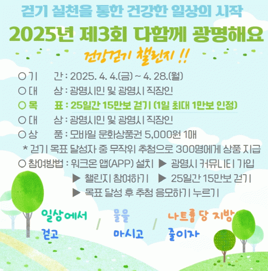 [»çȸ] ±¤¸í½Ã,¡®Á¦3ȸ ´ÙÇÔ²² ±¤¸íÇØ¿ä¡¯°Ç°­ °È±â 縰Áö ¿î¿µ |2025. 04.04