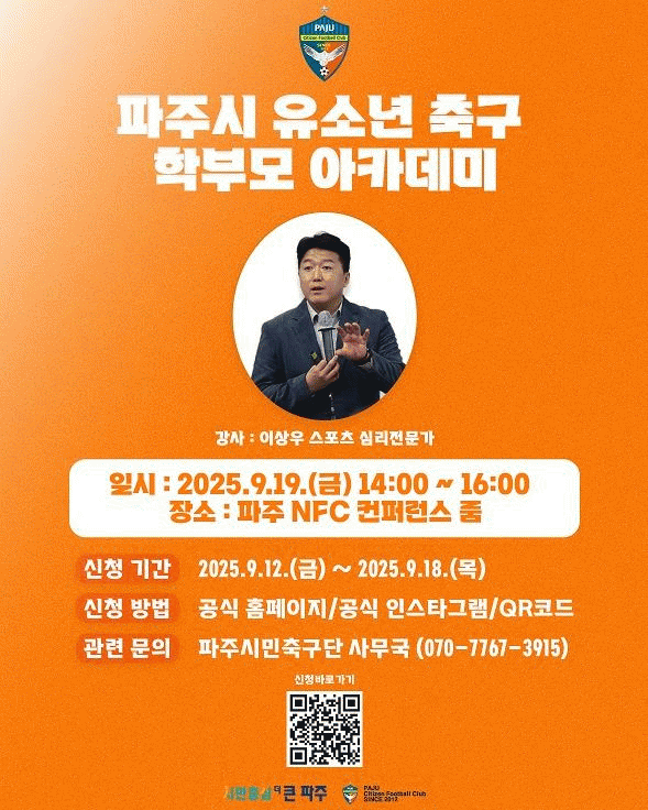 [NWS¹æ¼Û=Çѽ¸ñ ±âÀÚ]ÄÉÀÌ(K)¸®±×2 °¡ÀÔ 1Â÷ ½ÂÀÎÀ» ¿Ï·áÇÑ ÆÄÁֽùÎÃ౸´ÜÀÌ Áö¿ª À¯¼Ò³â Ã౸ ¹ßÀüÀ» À§ÇØ ÀÚ¸®¸¦ ¸¶·ÃÇÑ´Ù. ÆÄÁֽùÎÃ౸´ÜÀº ¿À´Â 19ÀÏ 14½ÃºÎÅÍ 16½Ã±îÁö ÆÄÁÖ Ã౸±¹°¡´ëÇ¥ÈÆ·Ã¿ø(NFC)¿¡¼­ ¡®²ÞÀ» Çö½Ç·Î ¸¸µå´Â ¡¦
