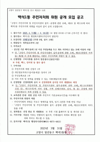 [»çȸ] °í¾ç½Ã ¹é¼®1µ¿, 2025³â »ó¹Ý±â ÁÖ¹ÎÀÚġȸ À§¿ø °ø°³¸ðÁý |2025. 04.04