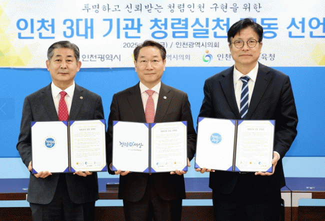 [NWS¹æ¼Û=Çѽ¸ñ ±âÀÚ]ÀÎõ±¤¿ª½ÃÀÇȸ´Â 4ÀÏ ÀÇȸ Á¢°ß½Ç¿¡¼­ ÀÎõ±¤¿ª½Ã(½ÃÀå À¯Á¤º¹), ÀÎõ±¤¿ª½Ã±³À°Ã»(±³À°°¨ µµ¼ºÈÆ) µî°ú ÇÔ²² ¡®ÀÎõ 3´ë ±â°ü û·Å ½Çõ °øµ¿ ¼±¾ð½Ä¡¯À» °³ÃÖÇß´Ù. À̹ø Çà»ç´Â Áö³­ÇØ 12¿ù ±¹¹Î±ÇÀÍÀ§¿øÈ¸¿¡¼­¡¦