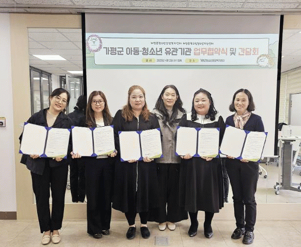 [NWS¹æ¼Û=Çѽ¸ñ ±âÀÚ]°¡Æò±ºÃ»¼Ò³â»ó´ãº¹Áö¼¾ÅÍ¿Í Çб³¹Ûû¼Ò³âÁö¿ø¼¾ÅÍ´Â °ü³» µ¹º½±â°ü°ú û¼Ò³â º¹Áö Çâ»óÀ» À§ÇÑ ¾÷¹«Çù¾à(MOU)À» ü°áÇß´Ù°í 4ÀÏ ¹àÇû´Ù. À̹ø Çù¾à½Ä¿¡´Â °¡Æò±ºÃ»¼Ò³â»ó´ãº¹Áö¼¾ÅÍ, ¼³¾ÇÁö¿ª¾Æµ¿¼¾ÅÍ, °¡ÆòÀ¾Çູ¡¦