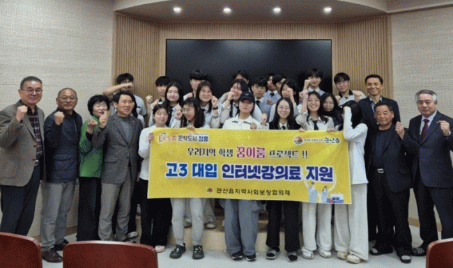 [NWS¹æ¼Û=Çѽ¸ñ ±âÀÚ]ÀåÈﱺ °ü»êÀ¾Áö¿ª»çȸº¸ÀåÇùÀÇü(°øµ¿À§¿øÀå »ç¼±È¯, À¯¾ç¼±)´Â ÃÖ±Ù °ü»ê°í °ü»ê¸¶·ç¿¡¼­ 3Çгâ 21¸í Àü¿ø¿¡°Ô ´ëÀÔ ÀÎÅͳݰ­ÀÇ·á 63¸¸¿ø¾¿°ú ½ÅÀÔ»ý 12¸í¿¡°Ô ²É±æ ¿îµ¿È­ 10¸¸¿ø ±³È¯±ÇÀ» Àü´ÞÇß´Ù. °í3 Çлýµé¡¦