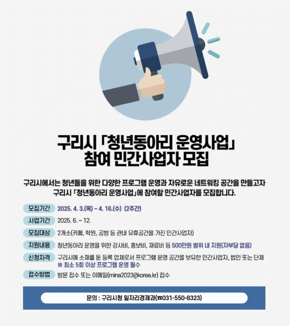[»çȸ] ±¸¸®½Ã, 2025³â û³âµ¿¾Æ¸® ¿î¿µ ¹Î°£»ç¾÷ÀÚ ¸ðÁý |2025. 04.04