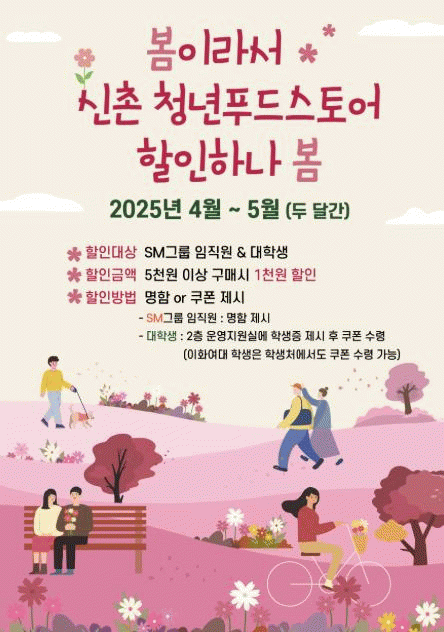[NWS¹æ¼Û=Çѽ¸ñ ±âÀÚ]¼­´ë¹®±¸°¡ º½À» ¸Â¾Æ 4~5¿ù 2°³¿ù°£ ¡®½ÅÃÌ Ã»³âǪµå½ºÅä¾î¡¯(½ÅÃÌ¿ª·Î22-5)¿¡¼­ ÇÒÀÎÀ̺¥Æ®¸¦ ÁøÇàÇÑ´Ù°í 4ÀÏ ¹àÇû´Ù. Àα٠ÀÌÈ­¿©´ë¿Í ¿¬¼¼´ë¸¦ Æ÷ÇÔÇÑ ´ëÇлýµé°ú Áö³­ÇØ 4¿ù ½ÅÃ̹ÎÀÚ¿ª»ç¿¡ ÀÔÁÖÇÑ SM±×·ì Á÷¡¦