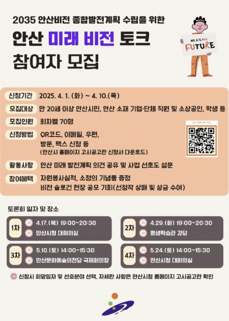 [»çȸ] ¾È»ê½Ã, '2035 ¾È»êºñÀü Á¾ÇÕ¹ßÀü°èȹ' ½Ã¹Î°ú ÇÔ²² ¼ö¸³¡¦ Âü¿©ÀÚ ¸ðÁý |2025. 04.04