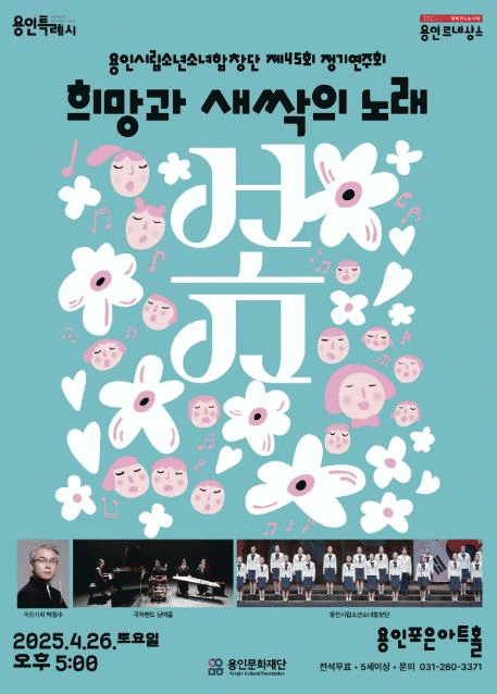 [NWS¹æ¼Û=Çѽ¸ñ ±âÀÚ]¿ëÀι®È­Àç´ÜÀº ¿À´Â 4¿ù 26ÀÏ ¿ëÀÎÆ÷Àº¾ÆÆ®È¦¿¡¼­ ¿ëÀνø³¼Ò³â¼Ò³àÇÕâ´Ü Á¦45ȸ Á¤±â¿¬ÁÖȸ 'Èñ¸Á°ú »õ½ÏÀÇ ³ë·¡ ¡°º½¡±'À» °³ÃÖÇÑ´Ù°í ¹àÇû´Ù. û¼Ò³âÀÇ °ÇÀüÇÑ °¡Ä¡°ü Çü¼º ¹× À½¾Ç±³À°À» ÅëÇÑ ÀÎÀç ¾ç¼ºÀ» ¸ñ¡¦