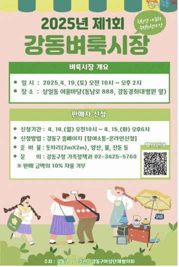 [NWS¹æ¼Û=Çѽ¸ñ ±âÀÚ]°­µ¿±¸´Â ¿À´Â 4¿ù 19ÀÏ ¿ÀÀü 10½Ã »óÀϵ¿ ¾î¿ï¸¶´ç(µ¿³²·Î 888)¿¡¼­ ¿ÃÇØ ù ¡®°­µ¿º­·è½ÃÀ塯À» °³ÀåÇÑ´Ù°í ¹àÇû´Ù. °­µ¿º­·è½ÃÀåÀº ¿ÃÇØ·Î 19³â° À̾î¿Â °­µ¿±¸ ´ëÇ¥ ³ª´®ÀåÅÍ·Î, °­µ¿±¸¿Í ¿©¼º´ÜüÇùÀÇȸ°¡ ¹Î¡¦