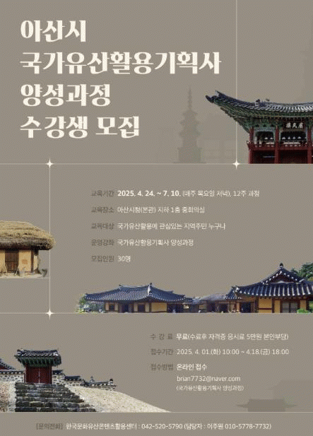 [NWS¹æ¼Û=Çѽ¸ñ ±âÀÚ]¾Æ»ê½Ã°¡ ¿À´Â 20ÀϱîÁö ¾Æ»ê½Ã¹ÎÀ» ´ë»óÀ¸·Î '±¹°¡À¯»êȰ¿ë±âȹ»ç ¾ç¼º°úÁ¤' ¼ö°­»ýÀ» ¸ðÁýÇÑ´Ù. ¡®±¹°¡À¯»êȰ¿ë±âȹ»ç ¾ç¼º°úÁ¤¡¯Àº ¿ì¸®Áö¿ªÀÇ °¡Ä¡ ÀÖ´Â ±¹°¡À¯»êÀ» Àû±ØÀûÀ¸·Î Ȱ¿ëÇϰí ÄÜÅÙÃ÷ ¹ß±¼À» ÅëÇØ ±Þ¡¦