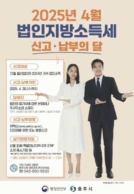 [»çȸ] ÃæÁÖ½Ã, 2024³â ±Í¼Ó ¹ýÀÎÁö¹æ¼Òµæ¼¼ È®Á¤ ½Å°í ¹× ³³ºÎ ¾È³» |2025. 04.04