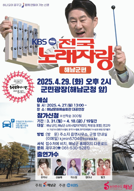 [NWS¹æ¼Û=Çѽ¸ñ ±âÀÚ]ÇØ³²±ºÀº Á¦52ȸ ÇØ³²±º¹ÎÀÇ ³¯À» ±â³äÇØ ¿À´Â 4¿ù 29ÀÏ ±º¹Î±¤Àå¿¡¼­ KBS Àü±¹³ë·¡ÀÚ¶ûÀ» °³ÃÖÇÑ´Ù. KBS °£ÆÇ ÇÁ·Î±×·¥ÀÎ Àü±¹³ë·¡ÀÚ¶ûÀÌ ÇØ³²À» ´Ù½Ã ãÀº °ÍÀº Áö³­ 2023³â ÀÌÈÄ ÀÌÈÄ 2³â¸¸À¸·Î 3ȸ¿¬¼Ó ÀçÀ¯Ä¡¡¦