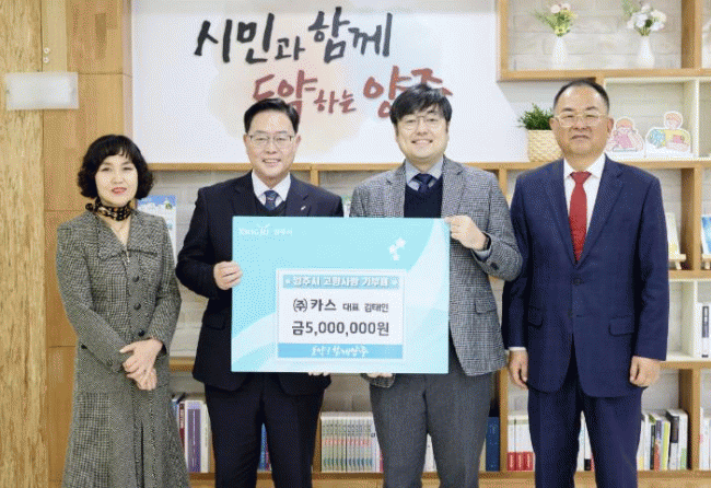 [NWS¹æ¼Û=Çѽ¸ñ ±âÀÚ]¾çÁֽÿ¡ ¼ÒÀçÇÑ ÀüÀÚÀú¿ï Àü¹®±â¾÷ÀÎ ¢ßÄ«½º°¡ Áö¿ª ¹ßÀüÀ» À§ÇØ ¾çÁֽÿ¡ °íÇâ»ç¶û±âºÎ±Ý 500¸¸ ¿øÀ» ±âŹÇß´Ù. À̳¯ Àü´ÞµÈ ±âºÎ±ÝÀº »çȸÀû Ãë¾à°èÃþ Áö¿øÀ» ºñ·ÔÇØ ¹®È­¡¤¿¹¼ú¡¤º¸°Ç ÁõÁø, Áö¿ª°øµ¿Ã¼ Ȱ¼ºÈ­¡¦