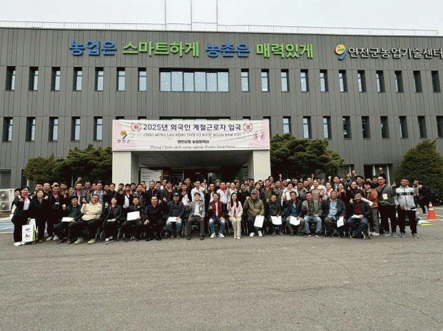 [NWS¹æ¼Û=Çѽ¸ñ ±âÀÚ]¿¬Ãµ±ºÀº Áö³­ 2ÀÏ ³ó¾÷±â¼ú¼¾ÅÍ 3Ãþ ´ë°­´ç¿¡¼­ º£Æ®³² µ¿Å¾¼º ¿Ü±¹ÀÎ °èÀý±Ù·ÎÀÚ 64¸í°ú 37¸íÀÇ ³ó°¡ÁÖ°¡ Âü¼®ÇÑ °¡¿îµ¥ Á¦3Â÷ ¿Ü±¹ÀÎ °èÀý±Ù·ÎÀÚ ³ó°¡´ë¸é½ÄÀ» °³ÃÖÇß´Ù°í 3ÀÏ ¹àÇû´Ù. ¿¬Ãµ±ºÀº ³ó°¡´ë¸é½Ä °³ÃÖ¡¦