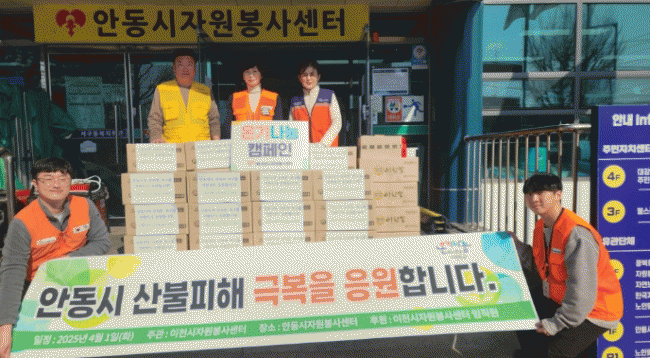[NWS¹æ¼Û=Çѽ¸ñ ±âÀÚ]ÀÌõ½ÃÀÚ¿øºÀ»ç¼¾ÅÍ´Â ¿µ³²Áö¿ª¿¡ ¹ß»ýÇÑ ´ëÇü »êºÒ·Î ÇÇÇØ°¡ ½É°¢ÇÑ ¾Èµ¿Áö¿ªÀÇ ÇÇÇØº¹±¸¿Í ÀÌÀç¹Î Áö¿øÀ» À§ÇØ 4¿ù 1ÀÏ ¡®ÀӱݴÔÇ¥ ÀÌõ½Ò ¸íǰ ÄÅ ´©·îÁö¡¯ 540°³¿Í ¹Ì¼ý°¡·ç, ½ÄÇý µîÀ» ¾Èµ¿½ÃÀÚ¿øºÀ»ç¼¾Å͸¦ Å롦