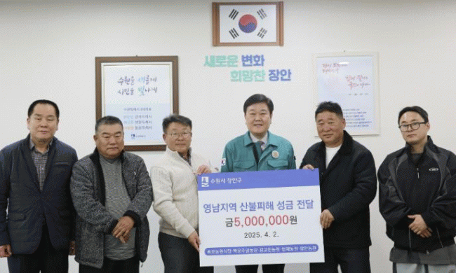[NWS¹æ¼Û=Çѽ¸ñ ±âÀÚ]¼ö¿ø½Ã Àå¾È±¸´Â Áö³­ 2ÀÏ, ¼ö¿ø½Ã Àå¾È±¸ ±¤±³»ê¿¡ À§Ä¡ÇÑ 5°³ ½Ä´ç¿¡¼­ ¿µ³²Áö¿ª »êºÒÇÇÇØ Áö¿øÀ» À§ÇØ 500¸¸¿øÀÇ ¼º±ÝÀ» ±âŹÇß´Ù°í ¹àÇû´Ù. À̹ø ¼º±ÝÀº ÃÖ±Ù ¿µ³²Áö¿ª¿¡¼­ ¹ß»ýÇÑ ´ë±Ô¸ð »êºÒ ÇÇÇØ º¹±¸¿¡ ½á¡¦
