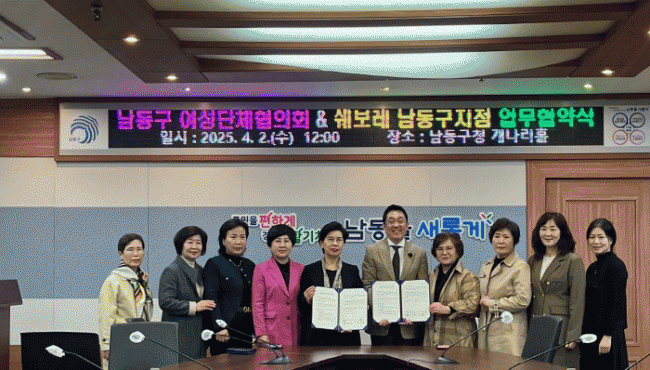 [NWS¹æ¼Û=Çѽ¸ñ ±âÀÚ]ÀÎõ½Ã ³²µ¿±¸ ¿©¼º´ÜüÇùÀÇȸ´Â ½¦º¸·¹ ³²µ¿±¸ ÁöÁ¡°ú ¾÷¹«Çù¾àÀ» ü°áÇß´Ù°í 3ÀÏ ¹àÇû´Ù. ³²µ¿±¸ ¿©¼º´ÜüÇùÀÇȸ´Â ¹Ù¸£°Ô»ì±â¿îµ¿ ³²µ¿±¸ÇùÀÇȸ ¿©¼ºÈ¸¸¦ Æ÷ÇÔÇÑ °ü³» 10°³ÀÇ ¿©¼º´Üü ȸÀåÀ¸·Î ÀÌ·ïÁ³À¸¸ç, »ç¡¦