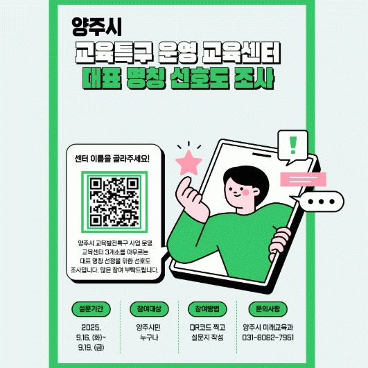 [NWS¹æ¼Û=Çѽ¸ñ ±âÀÚ]¾çÁֽð¡ ±³À°¹ßÀüƯ±¸ ½Ã¹üÁö¿ª »ç¾÷À» ÅëÇØ Á¶¼ºÇÑ ±³À°¼¾ÅÍÀÇ ´ëÇ¥ ¸íĪ ¼±Á¤À» À§ÇØ ¡®½Ã¹ÎÀÌ Á÷Á¢ »Ì´Â ³×ÀÌ¹Ö ¼±È£µµ Á¶»ç¡¯¸¦ ¿À´Â 19ÀϱîÁö ½Ç½ÃÇÑ´Ù. ½Ã´Â À̹ø Á¶»ç¸¦ ÅëÇØ µ¿¡¤¼­ºÎ±Ç °ÅÁ¡µ¹º½¼¾ÅÍ °¢¡¦