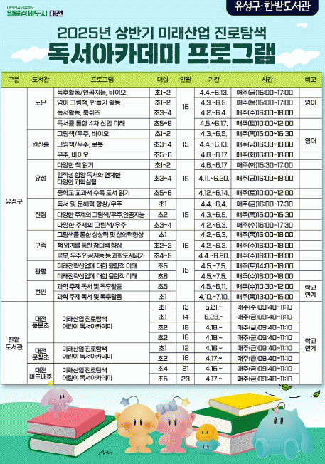 [NWS¹æ¼Û=Çѽ¸ñ ±âÀÚ]´ëÀü½Ã´Â ±³À°¹ßÀüƯ±¸ »ç¾÷ ÀÏȯÀ¸·Î ¿ÃÇØ »õ·Ó°Ô ¸¶·ÃÇÑ¡®¹Ì·¡»ê¾÷ Áø·Î Ž»ö µ¶¼­¾ÆÄ«µ¥¹Ì¡¯¸¦ º»°Ý ¿î¿µÇÑ´Ù. À̹ø µ¶¼­¾ÆÄ«µ¥¹Ì´Â Çѹ絵¼­°ü µî 17°³ µµ¼­°ü¿¡¼­ ÃʵîÇлý°ú ÁßÇлýÀ» ´ë»óÀ¸·Î Â÷¼¼´ë À¯¸ÁÀü¡¦