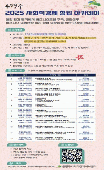 [NWS¹æ¼Û=Çѽ¸ñ ±âÀÚ]ÀºÆò±¸´Â ¿À´Â 22ÀϺÎÅÍ »çȸÀû°æÁ¦Çãºê¼¾ÅÍ¿¡¼­ »çȸÀû°æÁ¦±â¾÷ â¾÷À» ÁغñÇÏ´Â ±¸¹ÎÀ» ´ë»óÀ¸·Î ¡®2025³â »çȸÀû°æÁ¦ â¾÷ ¾ÆÄ«µ¥¹Ì¡¯¸¦ ½Ç½ÃÇÑ´Ù°í ¹àÇû´Ù. À̹ø ¾ÆÄ«µ¥¹Ì´Â â¾÷ Áغñ ½Ç¹« ¿ª·®À» °­È­Çϱâ À§¡¦