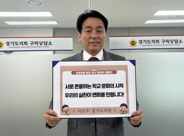 [NWS¹æ¼Û=Çѽ¸ñ ±âÀÚ]°æ±âµµÀÇȸ ±³À°ÇàÁ¤À§¿øÈ¸ ÀÌÀºÁÖ ÀÇ¿ø(±¹¹ÎÀÇÈû, ±¸¸®2)Àº 4¿ù 2ÀÏ, Çб³¿Í Áö¿ª»çȸ¿¡ »óÈ£Á¸ÁßÀÇ ¹®È­¸¦ È®»êÇϱâ À§ÇÑ '»óÈ£Á¸Áß ¸±·¹ÀÌ Ä·ÆäÀÎ'¿¡ µ¿ÂüÇß´Ù. À̹ø Ä·ÆäÀÎÀº °æ±âµµ±³À°Ã»ÀÌ ÃßÁøÇÏ´Â ¡®»óÈ£¡¦