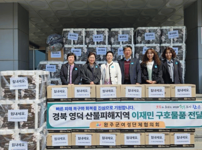 [NWS¹æ¼Û=Çѽ¸ñ ±âÀÚ]¿ÏÁÖ±º¿©¼º´ÜüÇùÀÇȸ°¡ °æºÏ ¿µ´ö »êºÒÇÇÇØ ÀÌÀç¹ÎÀ» µ½±â À§ÇØ ±¸È£¹°Ç°À» Àü´ÞÇß´Ù. ¿©¼º´ÜüÇùÀÇȸ´Â ¿µ´ö±ºÃ»¿¡ È­ÀåÁö, ¹°Æ¼½´, ¼ö°Ç, ¸¶½ºÅ© µî 200¸¸ ¿ø »ó´çÀÇ ±¸È£¹°Ç°À» Àü´ÞÇß´Ù. ¹°Ç°Àº ¿©¼º´Üü¿¡¡¦