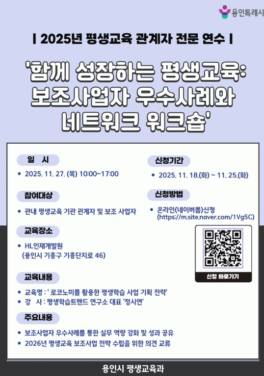 [»çȸ] ¿ëÀÎÆ¯·Ê½Ã, Æò»ý±³À° ³×Æ®¿öÅ© ¿öÅ©¼ó Âü°¡ÀÚ ¸ðÁý |2025. 11.16