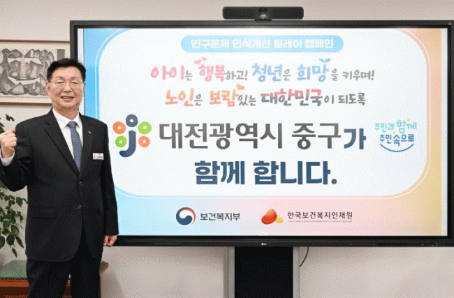 [NWS¹æ¼Û=Çѽ¸ñ ±âÀÚ]´ëÀü Áß±¸´Â Áö³­ 1ÀÏ ÀúÃâ»ê¡¤°í·ÉÈ­·Î ÀÎÇÑ Àα¸ ¹®Á¦ÀÇ ½É°¢¼ºÀ» ¾Ë¸®±â À§ÇØ ÁøÇàµÇ´Â ¡®Àα¸¹®Á¦ Àνݳ¼± ¸±·¹ÀÌ Ä·ÆäÀΡ¯¿¡ µ¿ÂüÇß´Ù°í ¹àÇû´Ù. º¸°Çº¹ÁöºÎ¿Í Çѱ¹º¸°Çº¹ÁöÀÎÀç¿øÀÌ ÁÖ°üÇÏ´Â À̹ø Ä·ÆäÀÎÀº¡¦