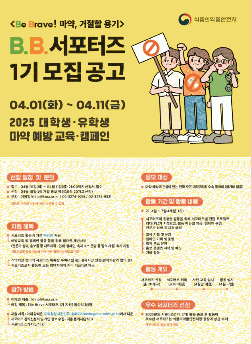 [°Ç°­] ½Ä¾àó, ´ëÇлý ¸¶¾à¿¹¹æ B.B.¼­Æ÷ÅÍÁî 1±â ¸ðÁý |2025. 04.02