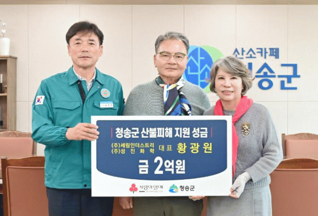 [NWS¹æ¼Û=Çѽ¸ñ ±âÀÚ] û¼Û±ºÀº Áö³­ 1ÀÏ, ¼¼¸²Àδõ½ºÆ®¸®¡¤¢ß¼ºÁøÈ­ÇÐÀÇ È²±¤¿ø ´ëÇ¥°¡ »êºÒ ÇÇÇØ¸¦ ÀÔÀº û¼Û±º¹ÎµéÀ» µ½±â À§ÇØ ¼º±Ý 2¾ï ¿øÀ» ±âŹÇß´Ù°í ¹àÇû´Ù. Ȳ±¤¿ø ´ëÇ¥´Â ¹Ð¾ç¿¡¼­ ±â¾÷À» ¿î¿µÇÏ¸ç Æò¼Ò¿¡µµ »çȸ°øÇå Ȱµ¿¡¦