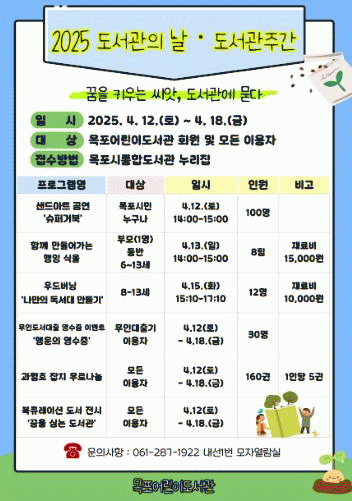 [»çȸ] ¸ñÆ÷¿µ¾îµµ¼­°ü, 4¿ù µµ¼­°ü ÁÖ°£ µ¶¼­¹®È­ Çà»ç ¿î¿µ |2025. 04.02