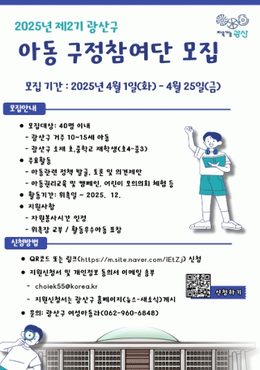[»çȸ] ±¤ÁÖ±¤¿ª½Ã ±¤»ê±¸, Á¦2±â ¾Æµ¿ ±¸Á¤Âü¿©´Ü ¸ðÁý |2025. 04.02