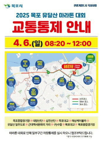 [»çȸ] ¸ñÆ÷½Ã, 2025 ¸ñÆ÷ À¯´Þ»ê ¸¶¶óÅæ ´ëȸ 6ÀÏ °³ÃÖ...´çÀÏ ¿ÀÀü ±³ÅëÅëÁ¦ |2025. 04.02