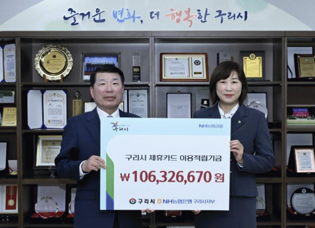 [NWS¹æ¼Û=Çѽ¸ñ ±âÀÚ]±¸¸®½Ã´Â Áö³­ 1ÀÏ NH³óÇùÀºÇà ±¸¸®½ÃÁöºÎ¿Í 2024³âµµ NH³óÇùÄ«µå À̿뿡 µû¸¥ Ä«µåÆ÷ÀÎÆ® Àû¸³±Ý Àü´Þ½ÄÀ» °¡Á³´Ù. À̳¯ Àü´Þ½Ä¿¡´Â ¹é°æÇö ±¸¸®½ÃÀå, ¹ÚÇö¼÷ NH³óÇùÀºÇà ±¸¸®½ÃÁöºÎÀå, ±èÁÖ¿ø NH³óÇùÀºÇà ±¸¸®½Ã¡¦
