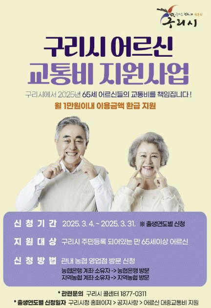 [»çȸ] ±¸¸®½Ã, 65¼¼ ÀÌ»ó ¾î¸£½Å ±³Åëºñ Áö¿ø Ãâ¹ß!! |2025. 04.02