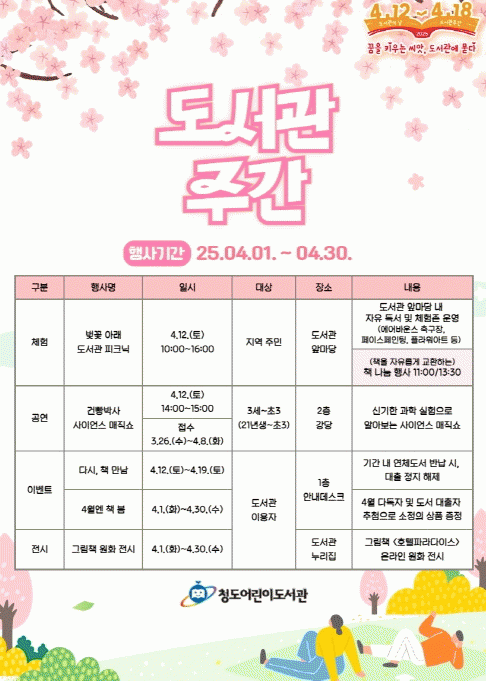 [»çȸ] ûµµ¾î¸°À̵µ¼­°ü, 4¿ù µµ¼­°üÁÖ°£ Çà»ç ¿î¿µ |2025. 04.02