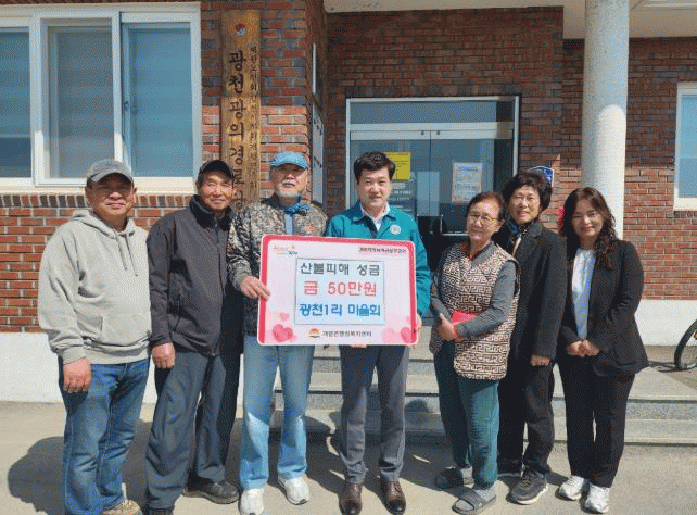 [NWS¹æ¼Û=Çѽ¸ñ ±âÀÚ]±èõ½Ã °³·É¸éÀº ±¤Ãµ1¸®(±¤ÀÇ) ¸¶À»È¸¿¡¼­ À̹ø ¿µ³² Áö¿ª ´ë±Ô¸ð »êºÒ·Î ÇÇÇØ¸¦ º» ÀÌÀç¹ÎµéÀ» À§ÇØ ¼º±Ý 50¸¸ ¿øÀ» ±âºÎÇß´Ù°í ¹àÇû´Ù. °³·É¸é ±¤Ãµ1¸®(±¤ÀÇ) ¸¶À»È¸´Â ¡°¸Å³â ¸¶À»È¸¿¡¼­´Â ÁֹΠȭÇÕÀ» À§ÇØ ¡¦
