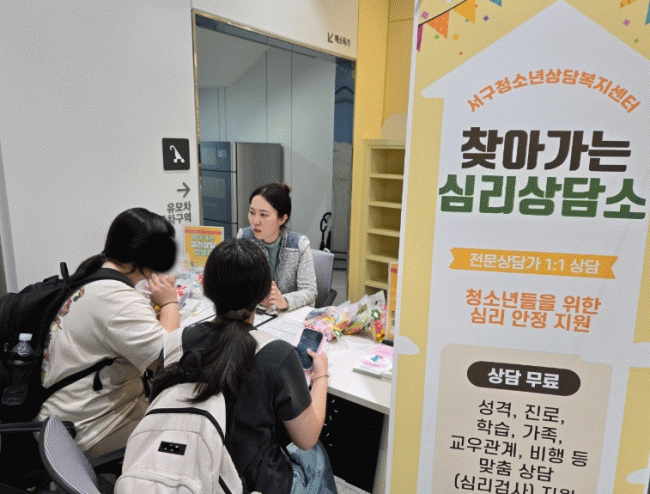 [NWS¹æ¼Û=Çѽ¸ñ ±âÀÚ]´ë±¸¼­±¸Ã»¼Ò³â»ó´ãº¹Áö¼¾ÅÍ´Â Áö³­ 3¿ù 27ÀÏ ´ºÆò¸®µµ¼­°ü¿¡¼­ û¼Ò³â 28¸íÀ» ´ë»óÀ¸·Î¡®Ã£¾Æ°¡´Â ½É¸® »ó´ã ÇÁ·Î±×·¥¡¯À» ¿î¿µÇß´Ù°í ¹àÇû´Ù. À̹ø ÇÁ·Î±×·¥Àº Àü¹® »ó´ã»ç°¡ µµ¼­°üÀ» Á÷Á¢ ã¾Æ°¡ û¼Ò³â°ú û¡¦