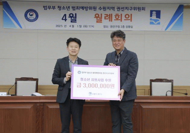 [NWS¹æ¼Û=Çѽ¸ñ ±âÀÚ]¼ö¿ø½Ã ±Ç¼±±¸´Â Áö³­ 1ÀÏ, û¼Ò³â ¹üÁË¿¹¹æÀ§¿øÈ¸ ±Ç¼±Áö±¸À§¿øÈ¸°¡ Áö¿øÇÏ´Â ¡®Ã»¼Ò³â »ç¾÷ ÈÄ¿ø±Ý Àü´Þ½Ä¡¯À» °¡Á³´Ù. ±Ç¼±±¸ °¡Á¤º¹Áö°ú¿¡ ¾à 300¸¸ ¿øÀÇ ±Ý¾×À» ÈÄ¿øÇßÀ¸¸ç, °ü³» û¼Ò³âÀ» ´ë»óÀ¸·Î ÁøÇàÇϴ¡¦