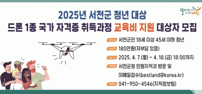 [»çȸ] ¼­Ãµ±º, û³â ´ë»ó µå·Ð 1Á¾ ±¹°¡ÀÚ°ÝÁõ Ãëµæ Áö¿ø, |2025. 04.02