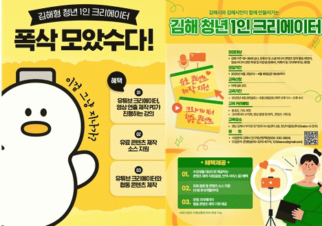 [NWS¹æ¼Û=Çѽ¸ñ ±âÀÚ] ±èÇØ½Ã´Â 2ÀϺÎÅÍ 18ÀϱîÁö ¡®2025³â ±èÇØÇü û³â 1ÀÎ Å©¸®¿¡ÀÌÅÍ À°¼º»ç¾÷¡¯ ±âÃÊ¹Ý ±³À°»ý 20¸íÀ» ¸ðÁýÇÑ´Ù. ±èÇØÇü û³â 1ÀÎ Å©¸®¿¡ÀÌÅÍ ±³À°Àº °¨°¢ Àִ û³âµéÀÇ ÄÜÅÙÃ÷ Á¦ÀÛ ´É·Â °³¹ßÀ» ÅëÇØ Áö¿ª ¹Ìµð¡¦